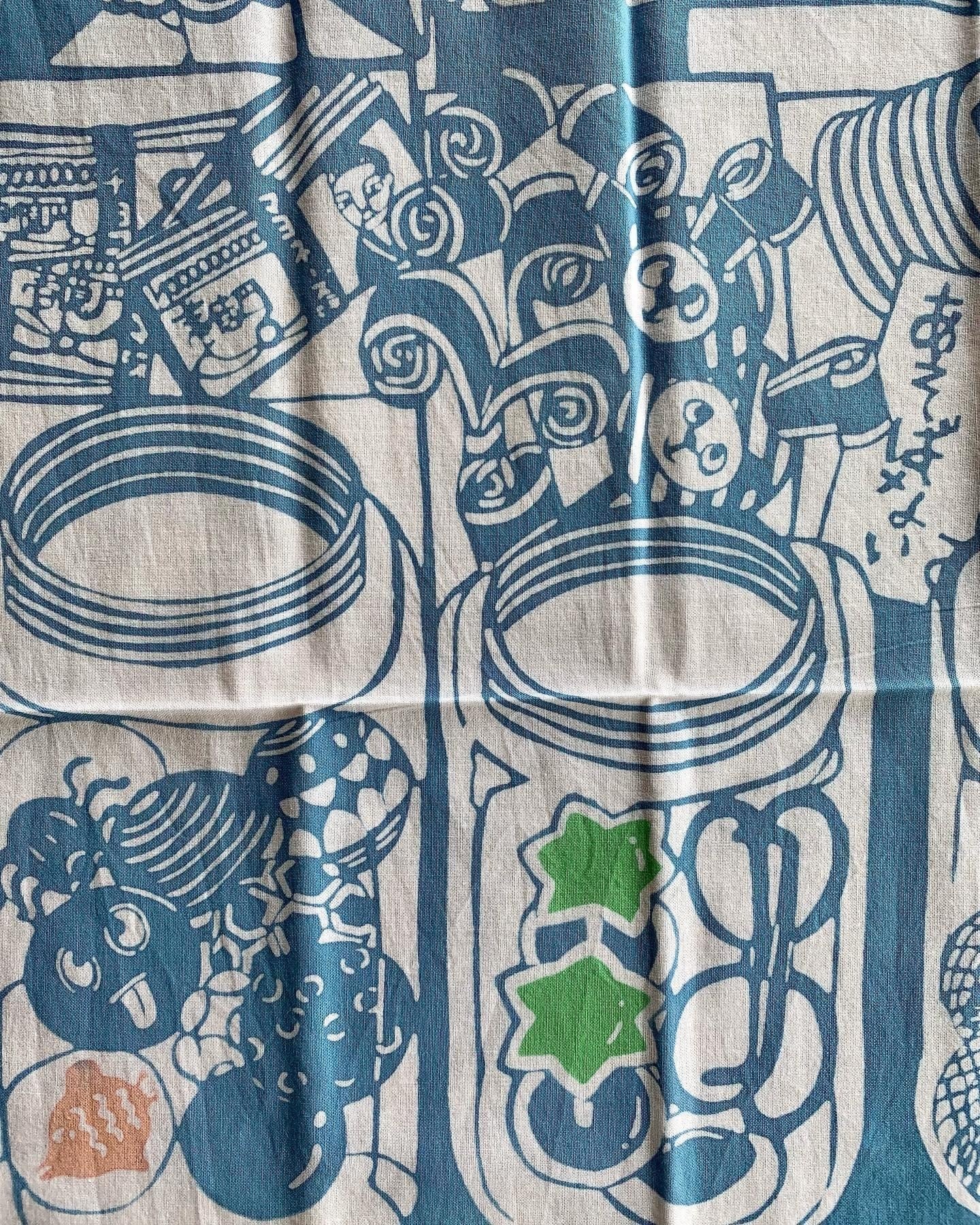 独特のタッチで描かれる版画家 工房カモさんの作品。ユーモアとパワーがあふれ、実用的な使い方はもちろん、タペストリーとして飾ってお楽しみ頂くのもおすすめです。