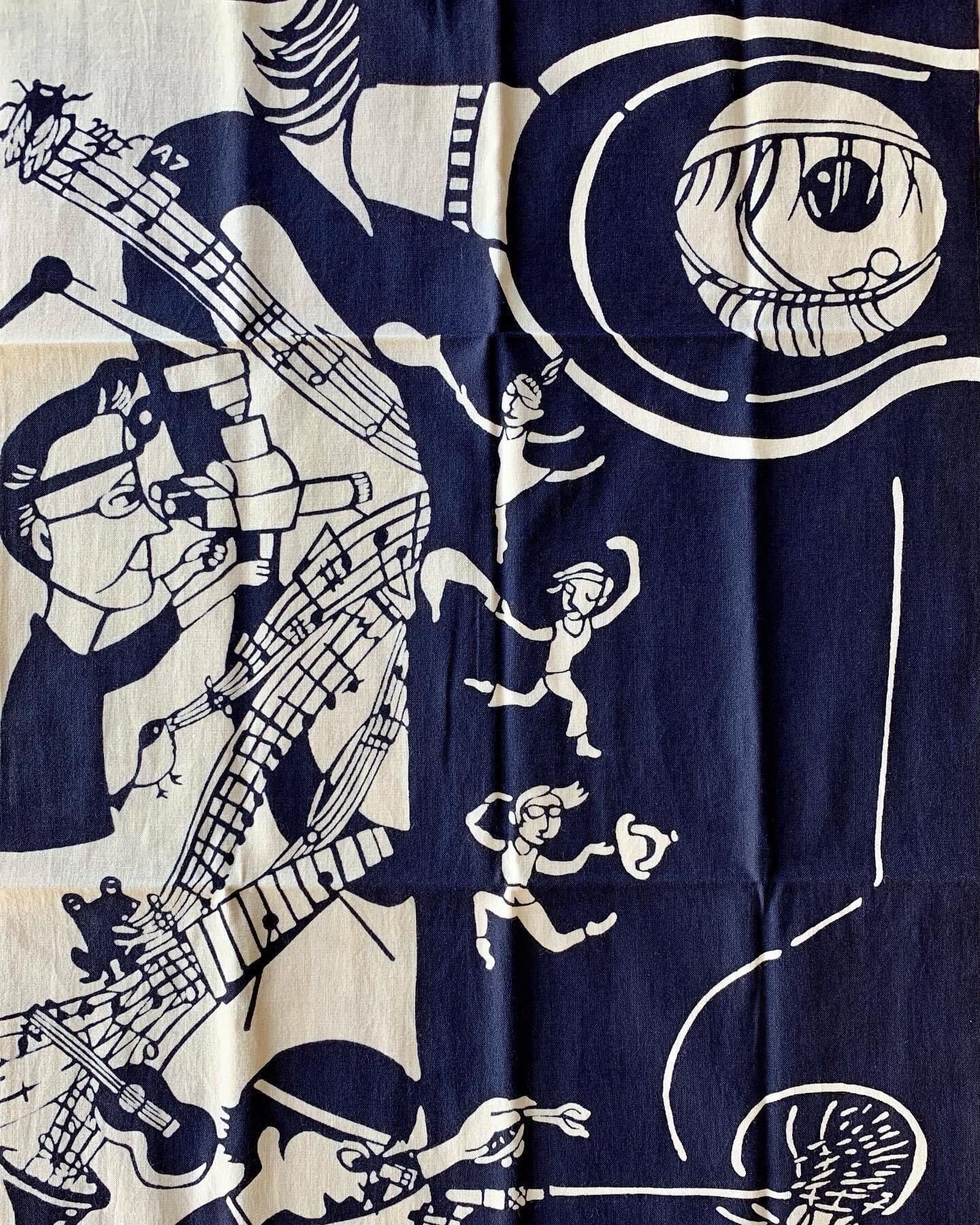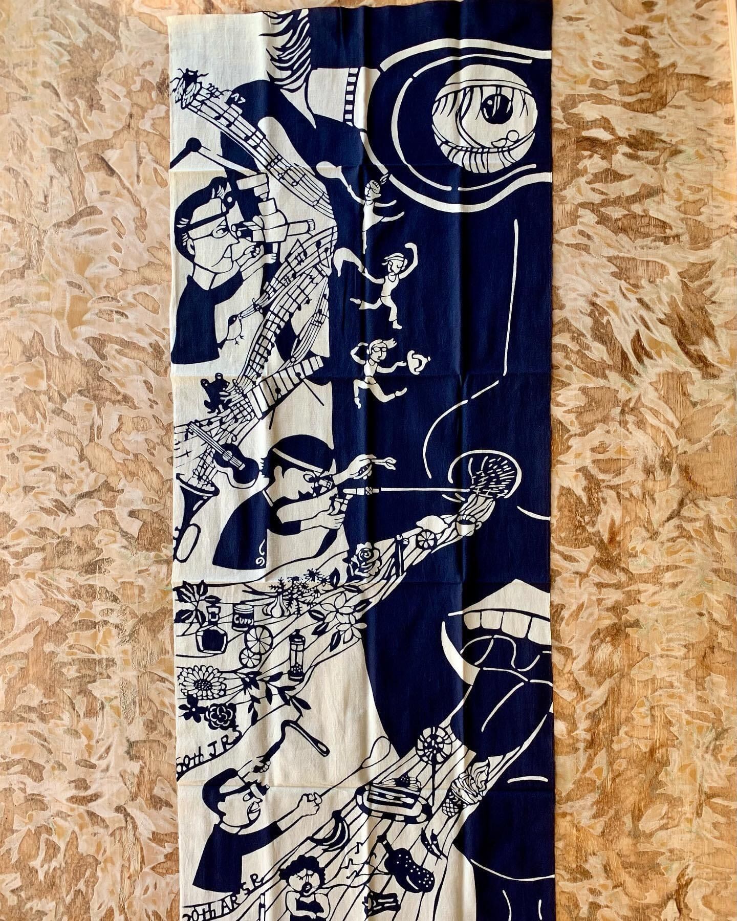 独特のタッチで描かれる版画家 工房カモさんの作品。ユーモアとパワーがあふれ、実用的な使い方はもちろん、タペストリーとして飾ってお楽しみ頂くのもおすすめです。