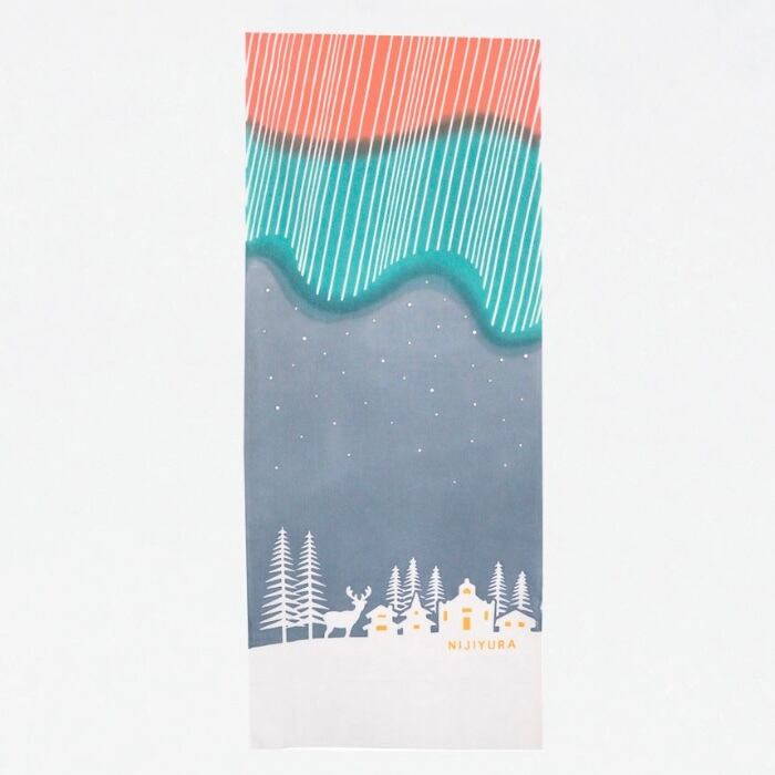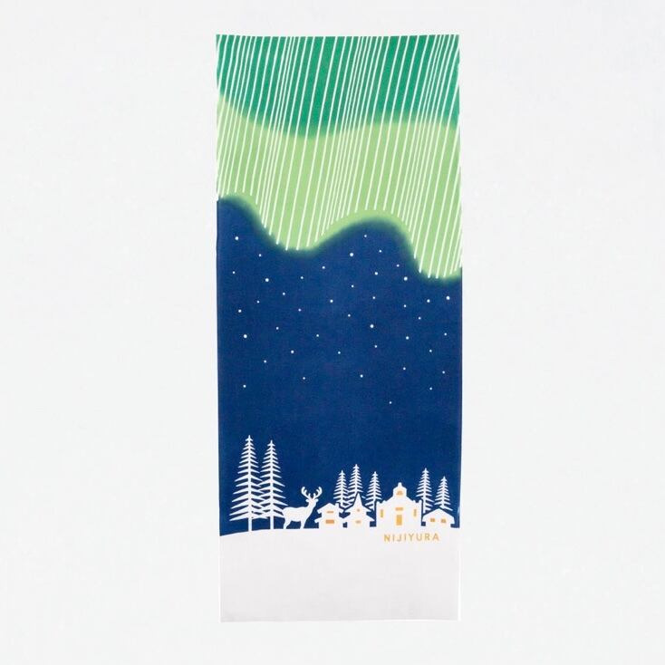 天体の極域近辺に見られる大気の発光現象であるオーロラ。 空気の澄んだフィンランドで観測することができます。神秘的で雄大なオーロラが身近な地域は、人々の暮らしも穏やかに冬を過ごします。ただ、見ているだけで心安らぐきれいなオーロラをインテリアとして楽しんでいただけるよう街並みと共に大らかに表現しました。寒い冬の季節、部屋の中に柔らかく美しい風景を飾りませんか。