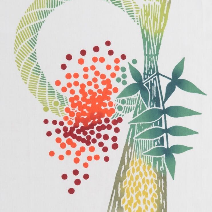 正月飾りは新年を迎え、神様の目印として玄関に飾ることで新しい年がよい年であるようにと願いを込めます。その風習を注染で表現した手ぬぐいは品よく、繊細なボカシが柄の奥行きを更に深いものへと仕上げてくれています。そして本来「松の内」を過ぎると神社等で処分しますが、こちらは、お台所周りなどいろいろな用途としてご使用いただけます。