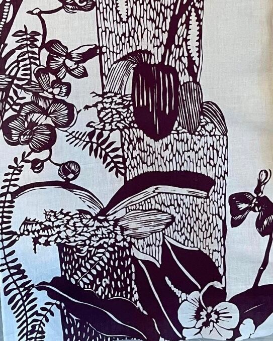 独特のタッチで描かれる版画家 工房カモさんの作品。ユーモアとパワーがあふれ、実用的な使い方はもちろん、タペストリーとして飾ってお楽しみ頂くのもおすすめです。
