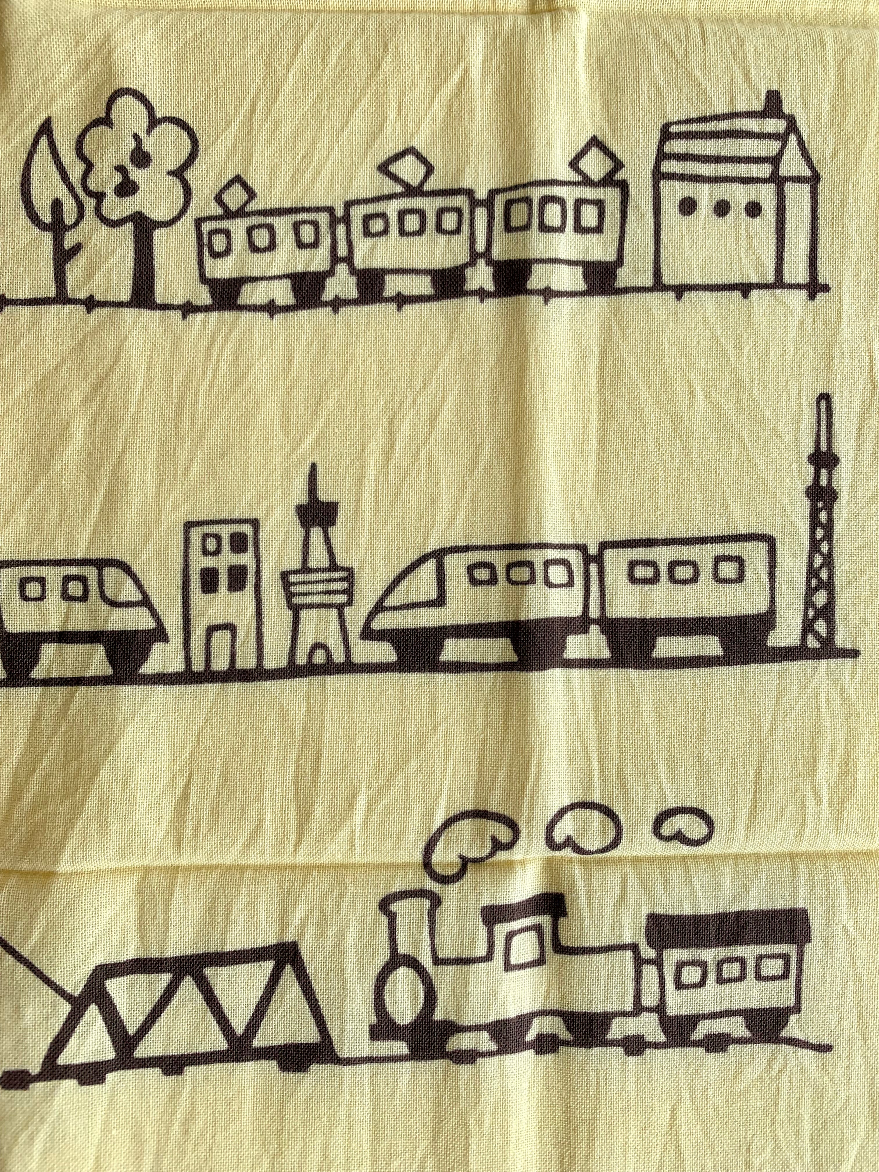 小さい子の大好きな電車柄。ほのぼのしたイラストに癒されます。