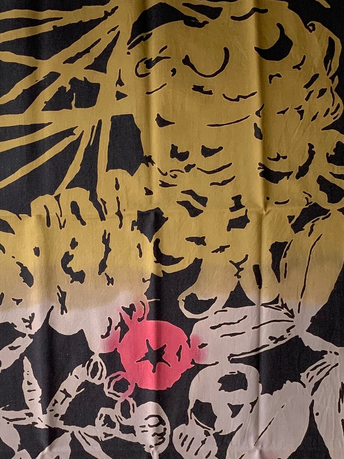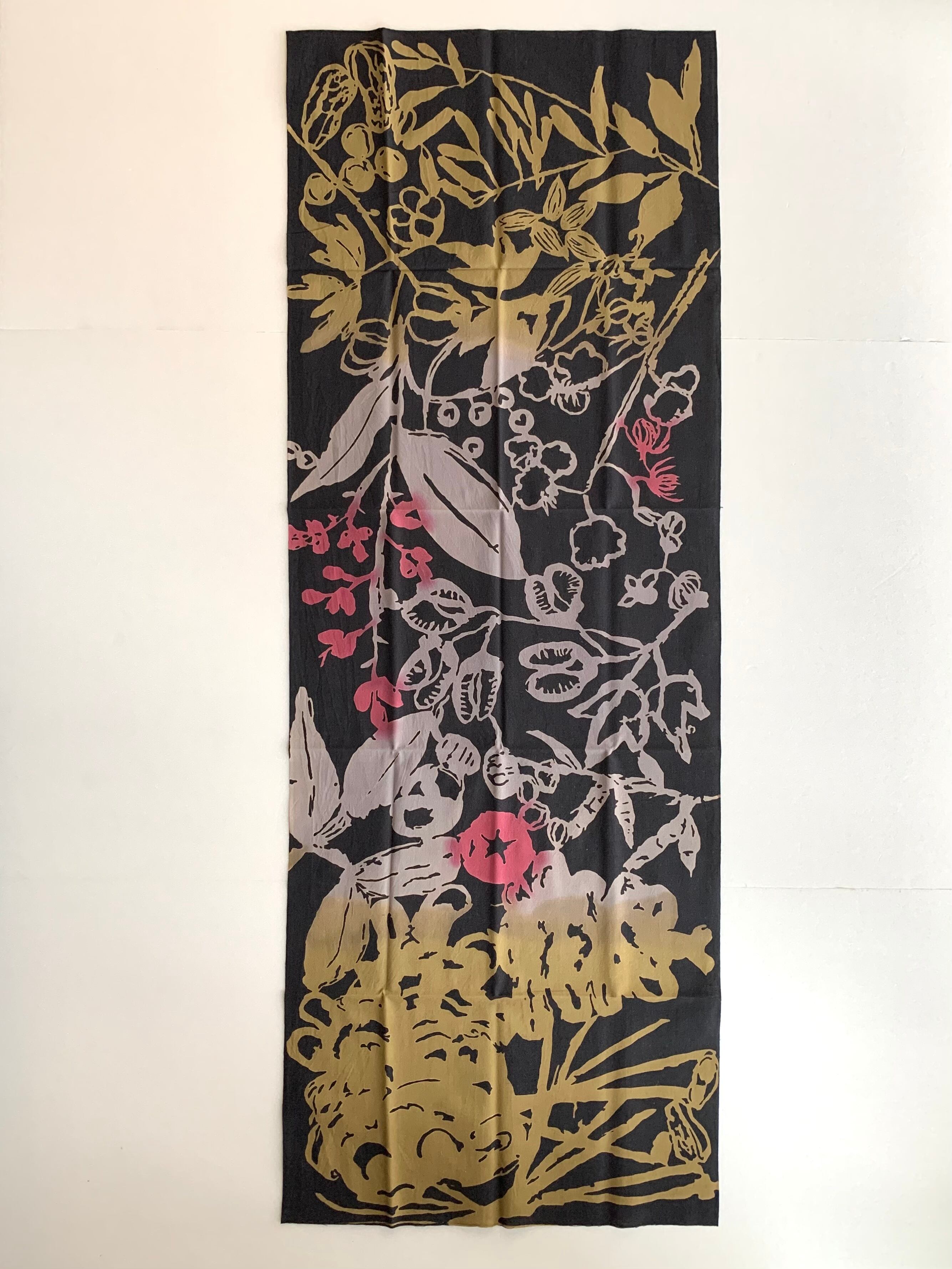 独特のタッチで描かれる版画家 工房カモさんの作品。ユーモアとパワーがあふれ、実用的な使い方はもちろん、タペストリーとして飾ってお楽しみ頂くのもおすすめです。