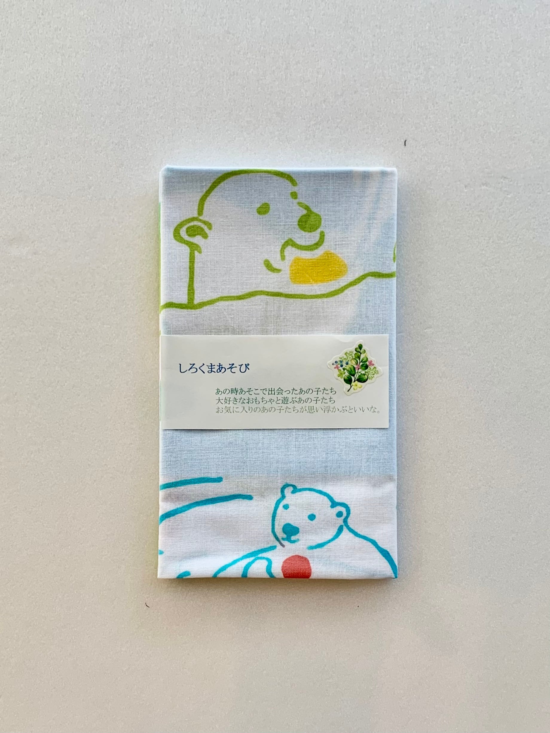 大好きなあの子や会いに行きたいあの子、野生の子たちを思い浮かべて、みんなの大好きなおもちゃと共に1枚の手ぬぐいに詰め込みました。